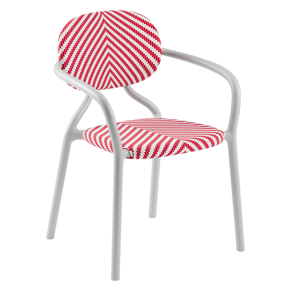 Outdoor polypropylene armchair that is easy to clean and protected against UV rays. These stackable chairs feature a Viennese cane pattern, are easy to clean, and are reinforced with fiberglass for enhanced durability. Winners of the German Design Award 2025 and the Red Dot Design Award 2024.