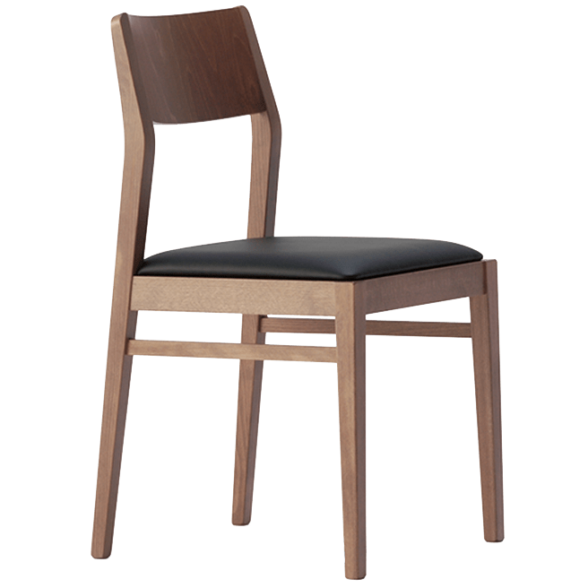 Side chair with upholstered seat and frame in natural beech. NOT STACKABLE.