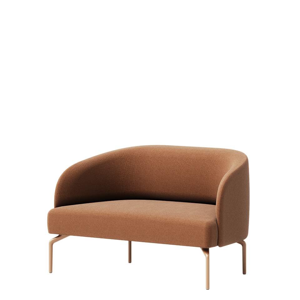 Two-seat sofa with epoxy-painted frame. Fully upholstered. 99% recyclable. Can be combined with privacy screen.