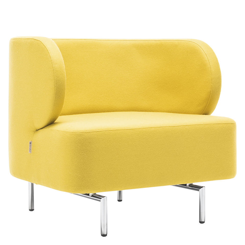 Lounge chair with distinctive rounded armrests and chrome feet.