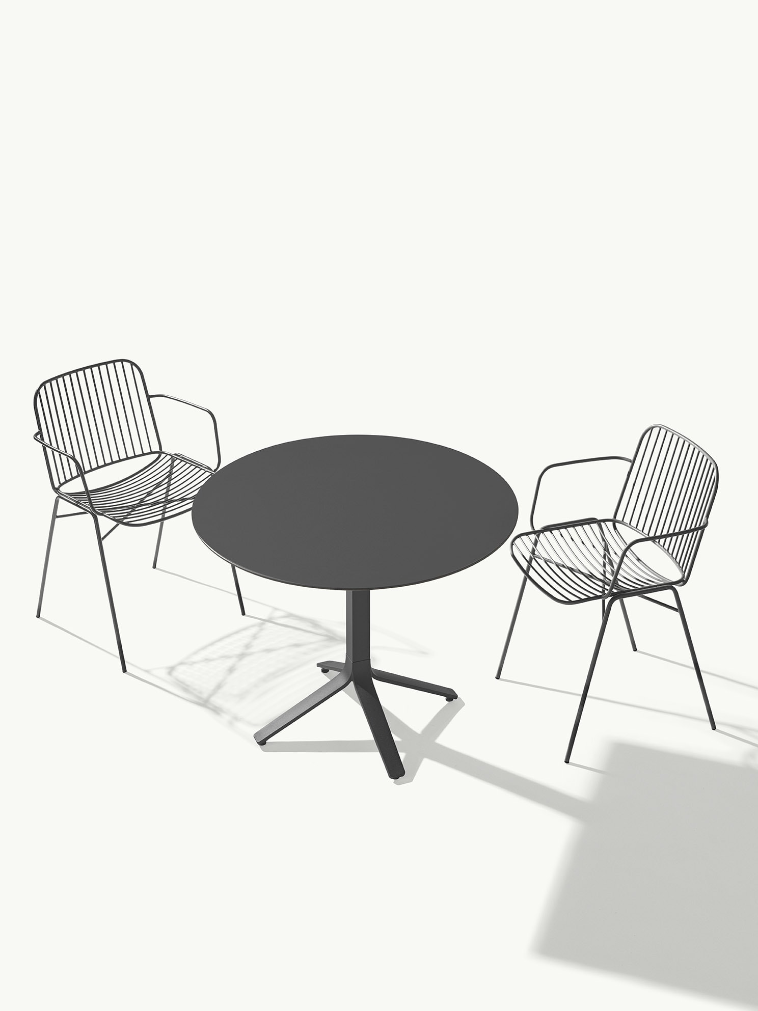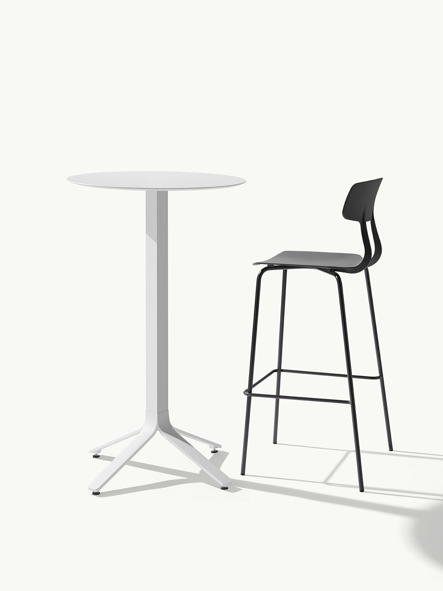 Bar-height table base suitable for outdoors with 105cm/41.3" column. Made of fully recyclable die-cast aluminum and features adjustable glides, offering great stability.