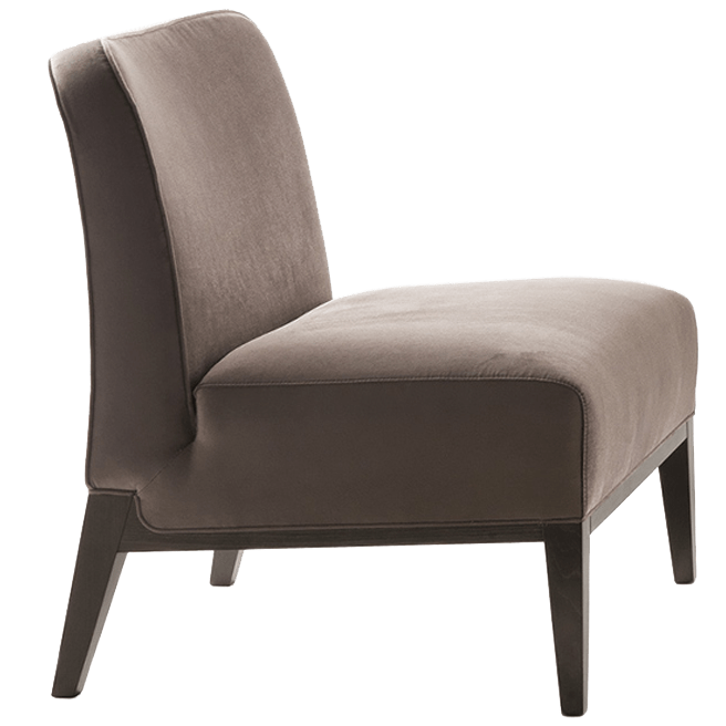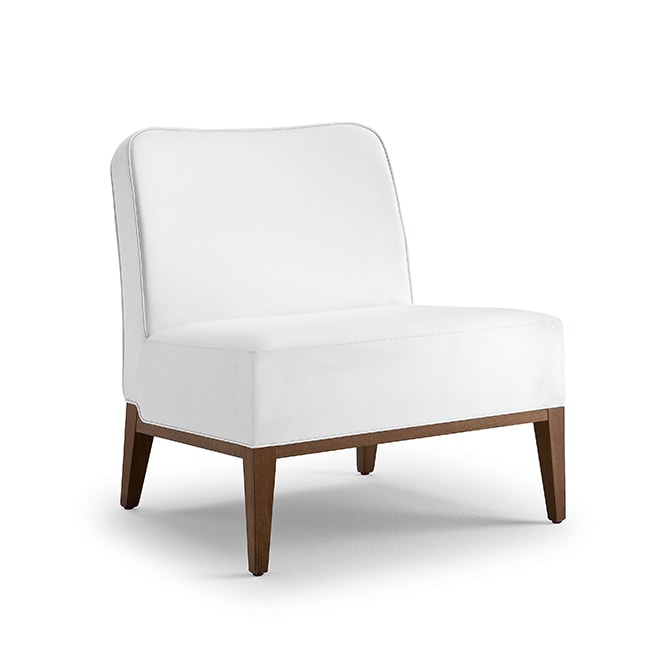 Upholstered lounge chair without arms, with piping detail and beech frame.