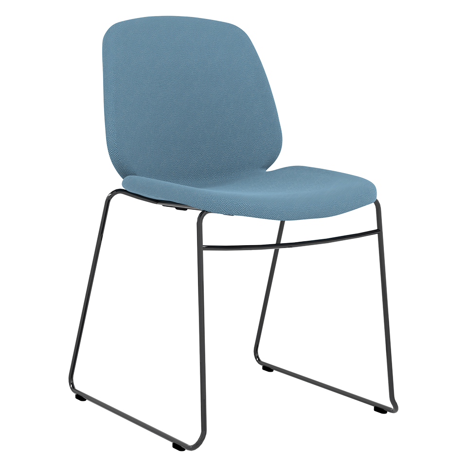 Upholstered, stacking side chair with sled base. Greenguard Gold-certified to minimize the impact on indoor air quality.