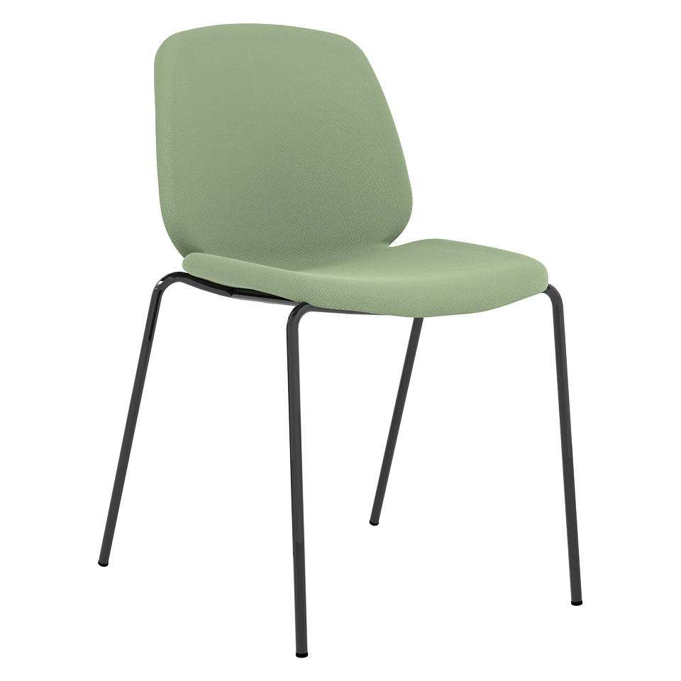 Side chair with steel legs and fully upholstered shell seat. This stackable chair is Greenguard Gold-certified to have a minimal impact on indoor air quality.