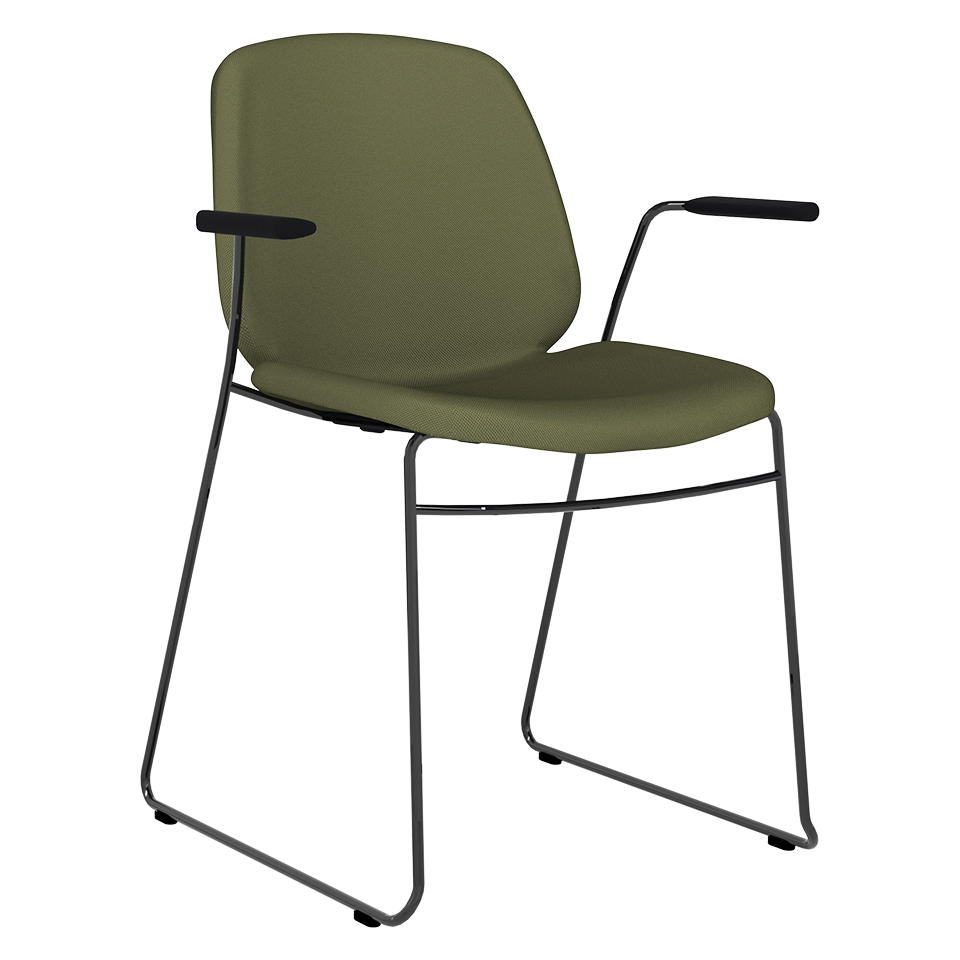 Stackable armchair with fully upholstered shell seat. Steel sled base. Greenguard Gold-certified to minimize the impact on air quality.