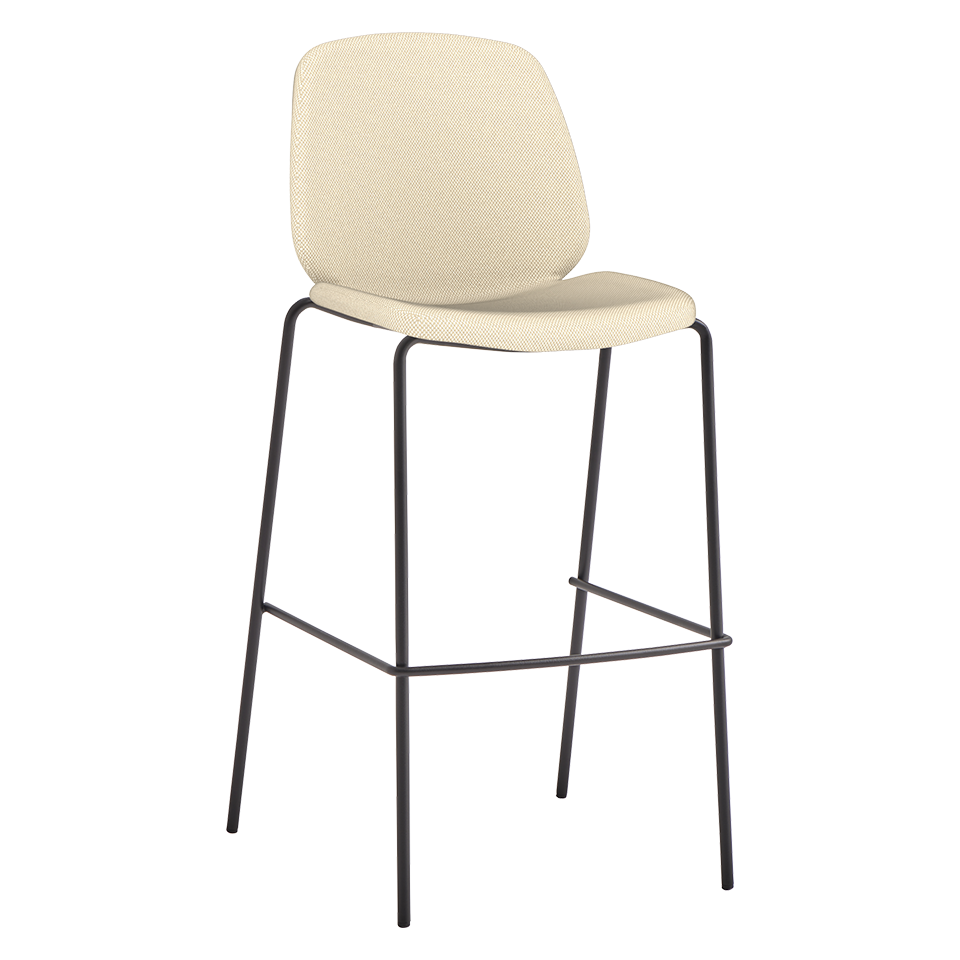 Stacking barstool with a fully upholstered shell seat and steel legs. Greenguard Gold-certified.