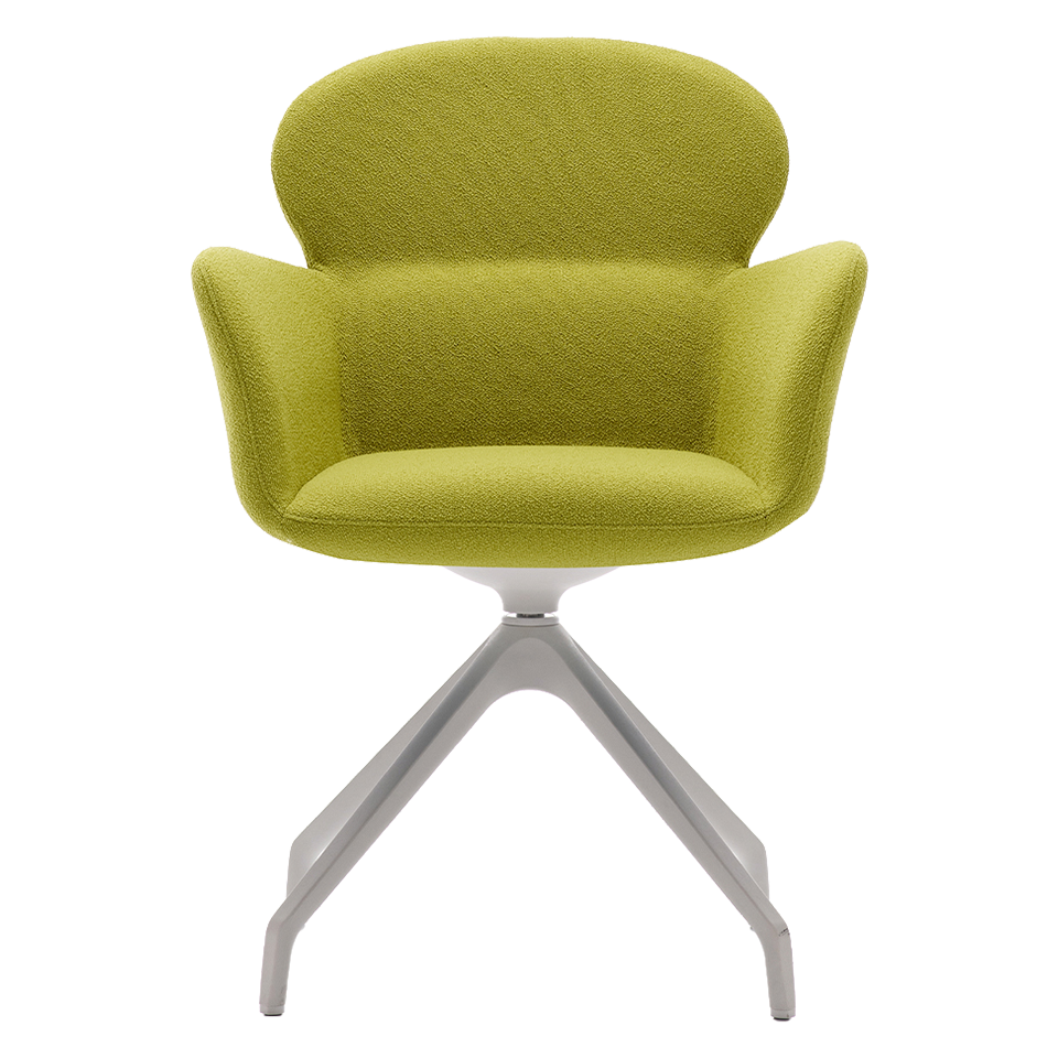 Swivel chair on black pyramid base made of reinforced polyamide.