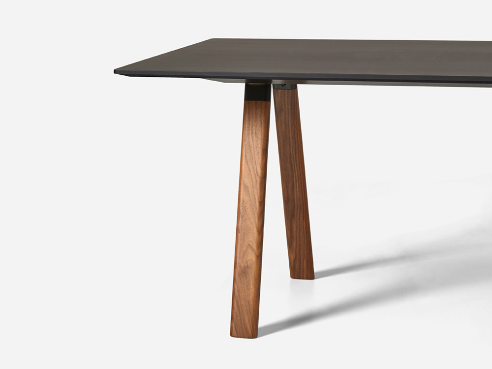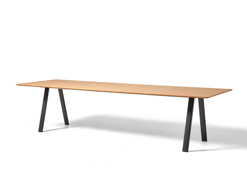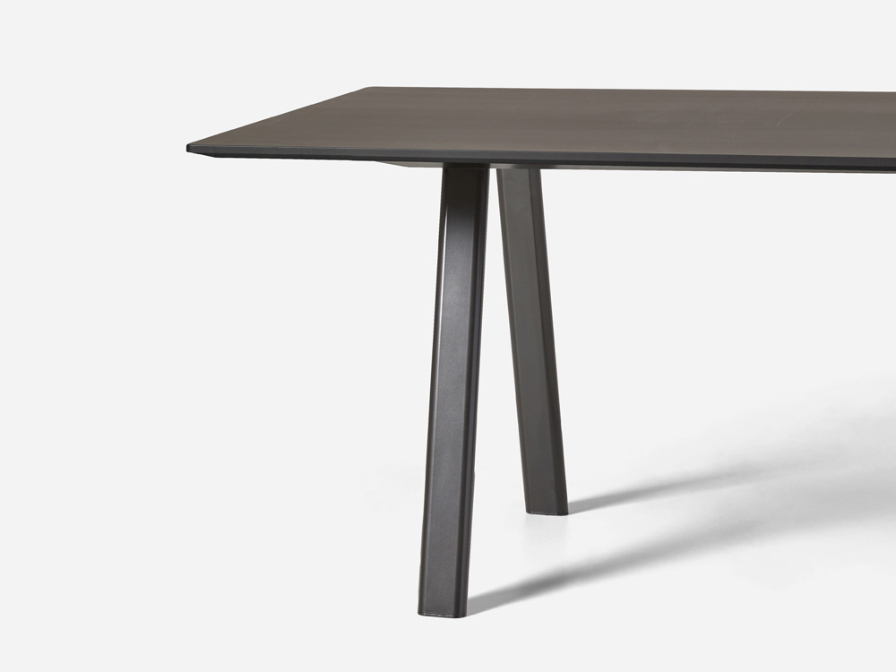 120cm x 280cm / 47.1" x 110.2" rectangular Plania table top in Fenix, HPL, melamine, lacquer, oak or walnut veneer finishes with standard epoxy painted structural frame. Requires 2 sets of Plania legs for dining/meeting table and counter height, and 3 sets for bar height. See below for optional accessories.