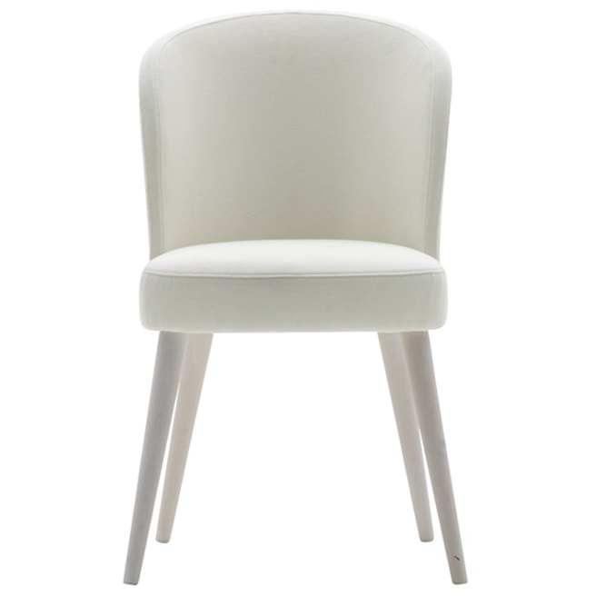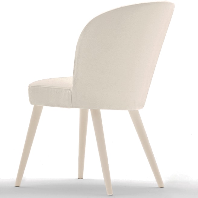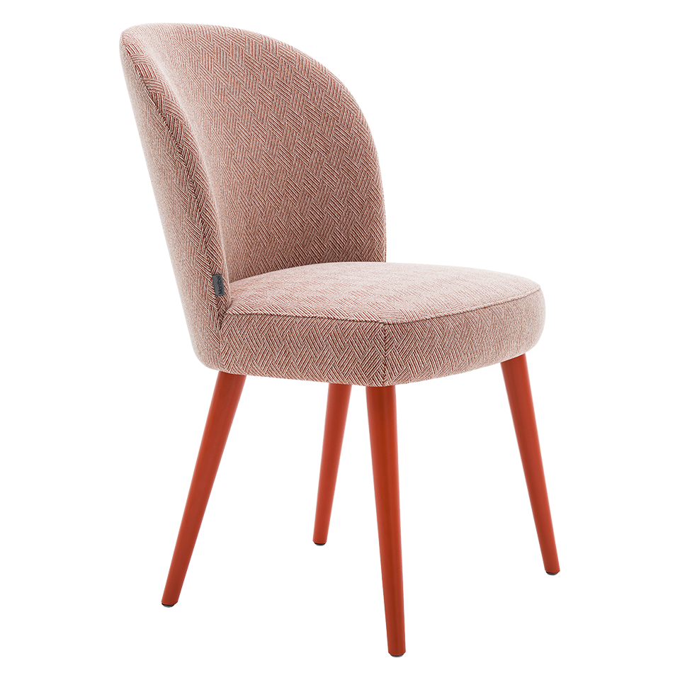 Upholstered side chair on solid wood frame. Webbed seat with plain upholstery, on 4 wooden legs.