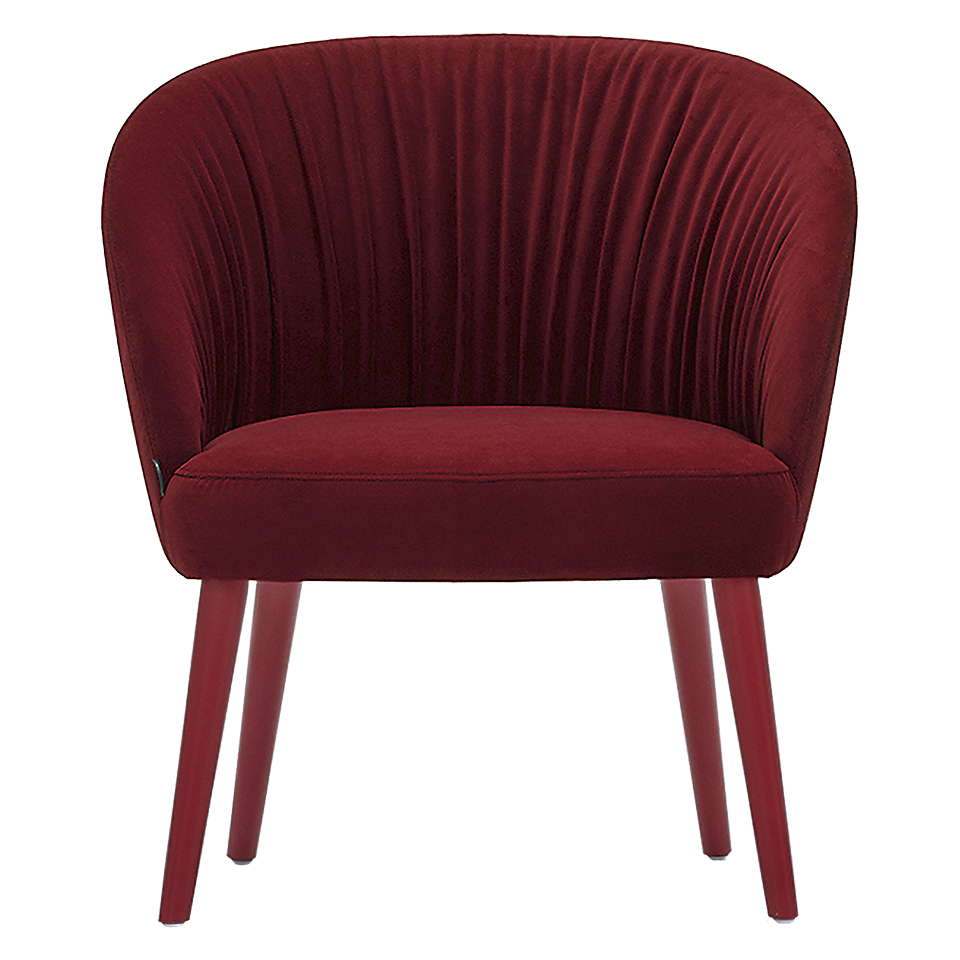 Upholstered lounge chair with pleated upholstery on solid wood frame.