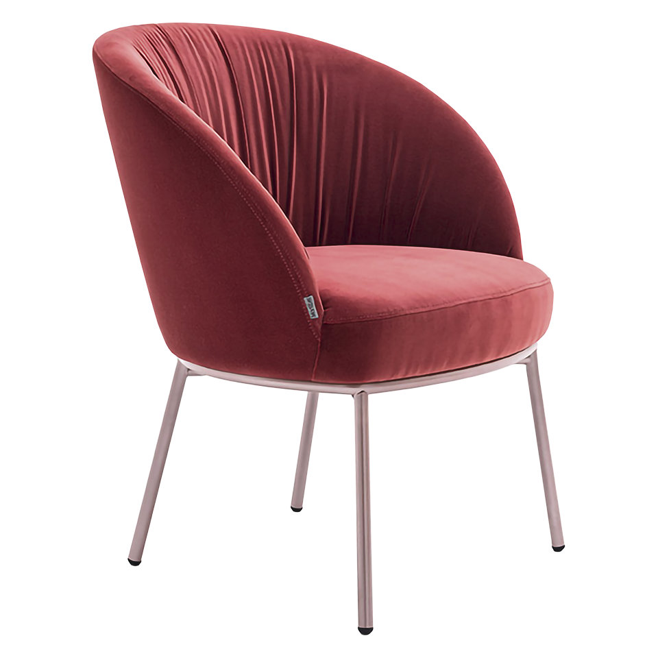 Upholstered lounge chair with pleated upholstery on a metal base.