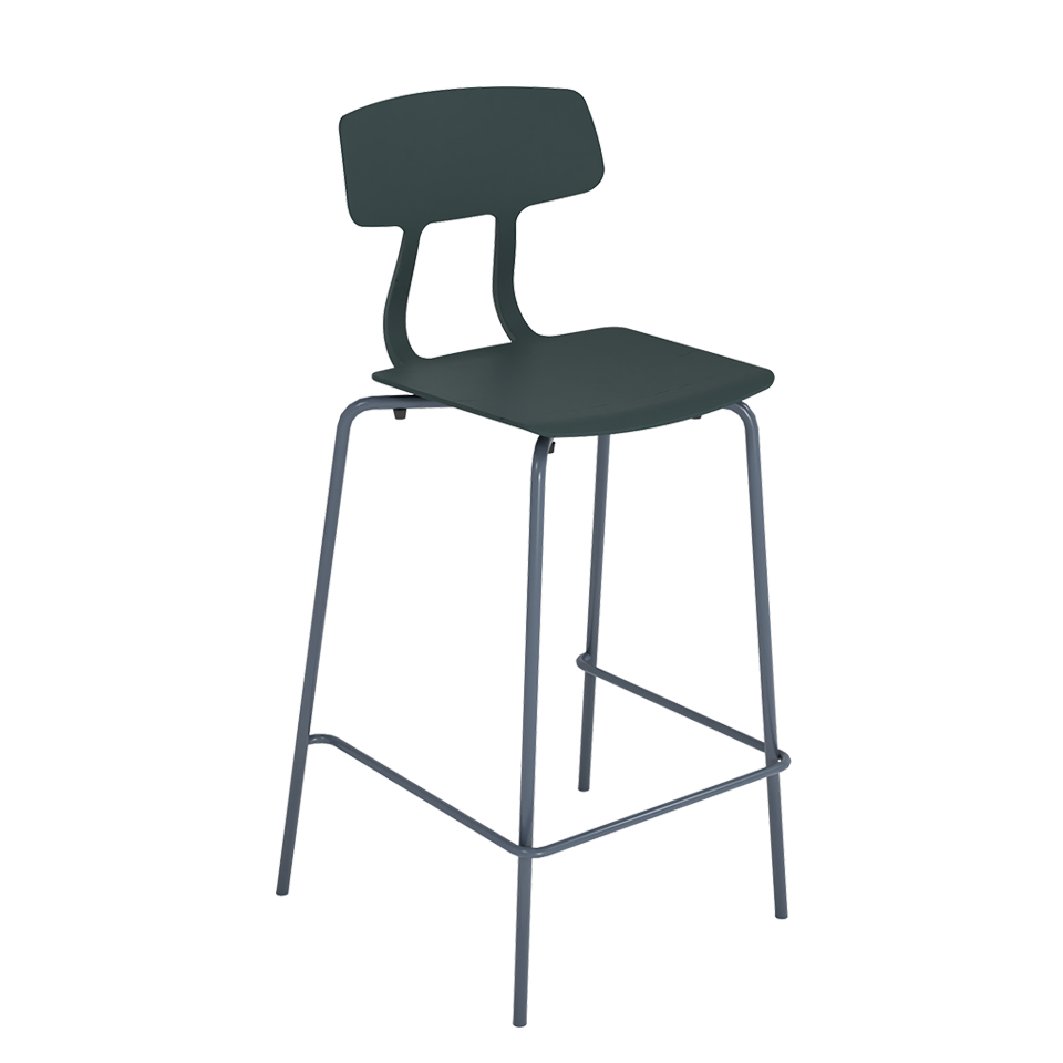 Counter stool with 4 leg steel frame and polypropylene shell.