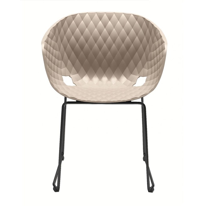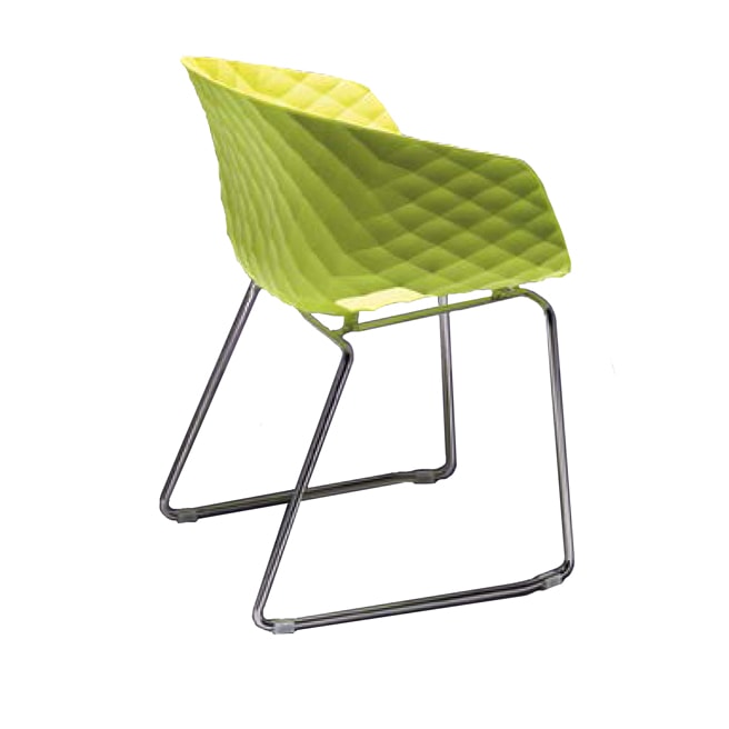 Armchair on steel sled frame. Polypropylene shell with matt finish, padded-effect texture on both sides.