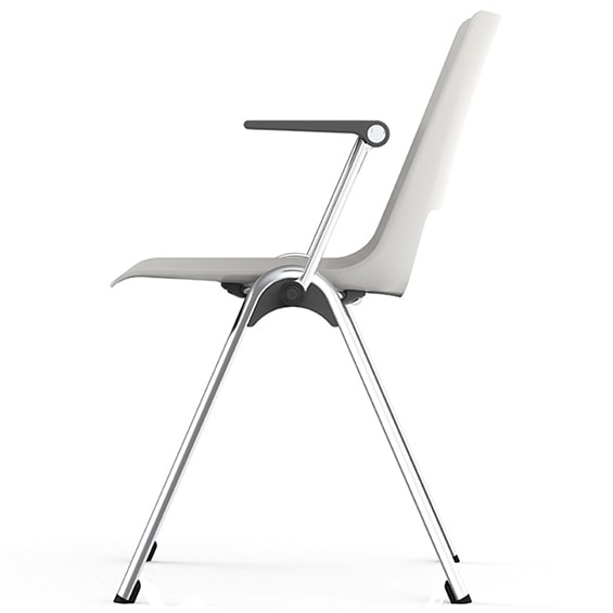 Stackable side chair with steel tube frame in polished chrome. Wood seat with upholstered seat and back pad. Stacks 10.