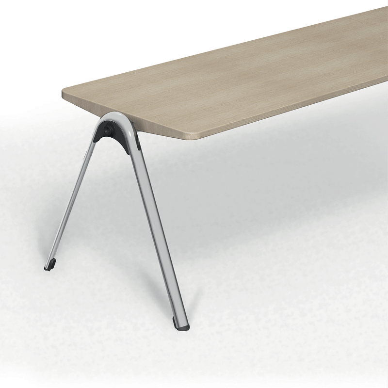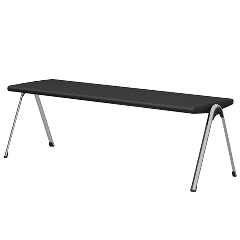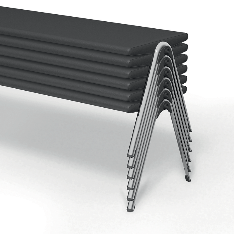 Stackable bench on a chrome frame with glides. Stacks vertically.