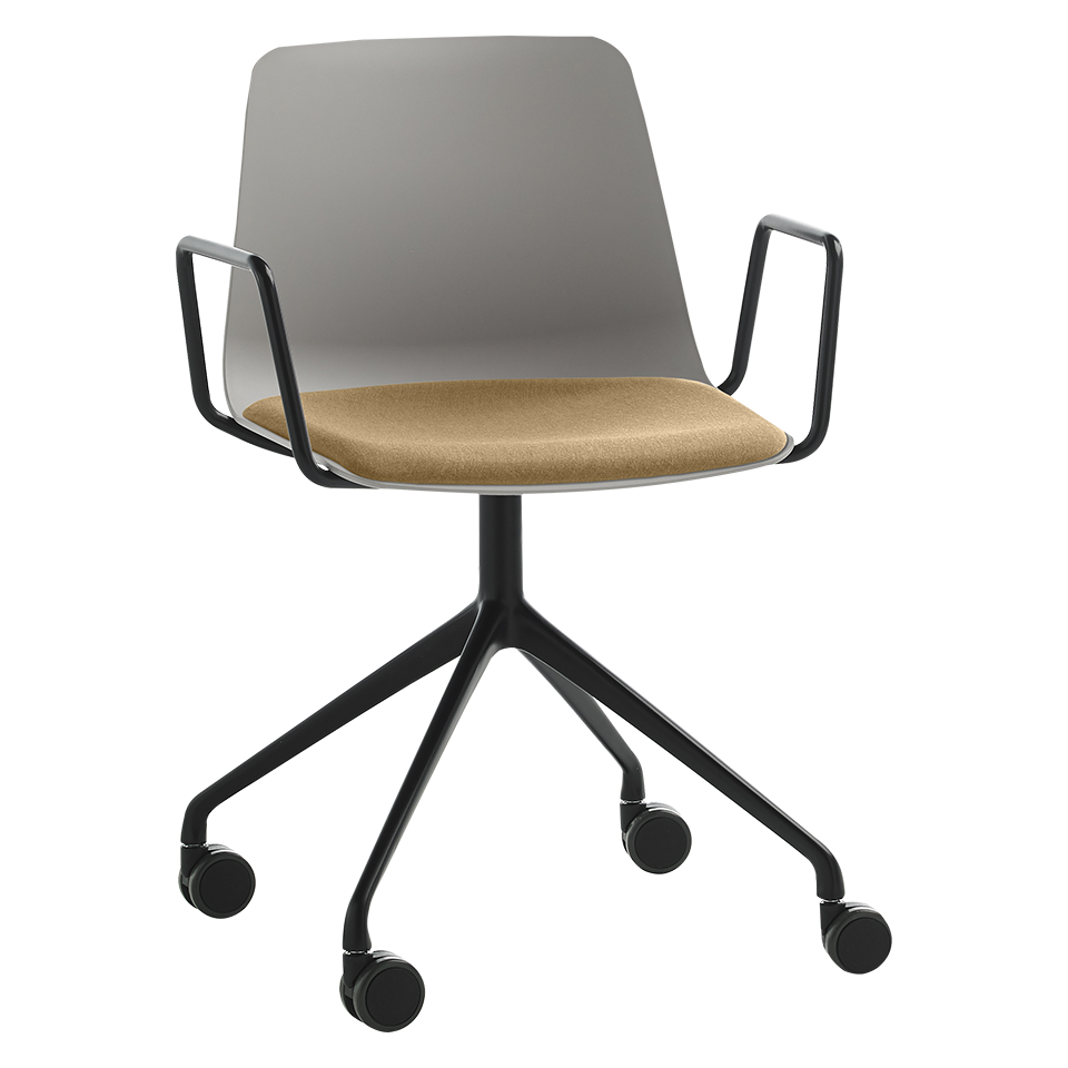 Swivel armchair on an aluminum base, with upholstered seat and polypropylene back.