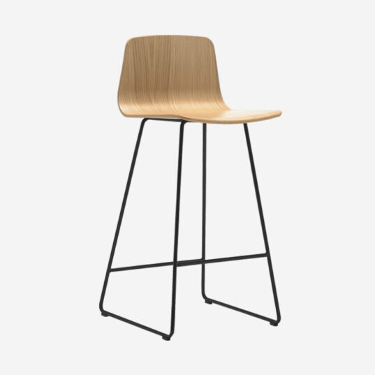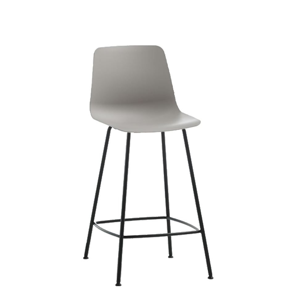 Counter stool with polypropylene shell and round steel tube 4 leg frame.