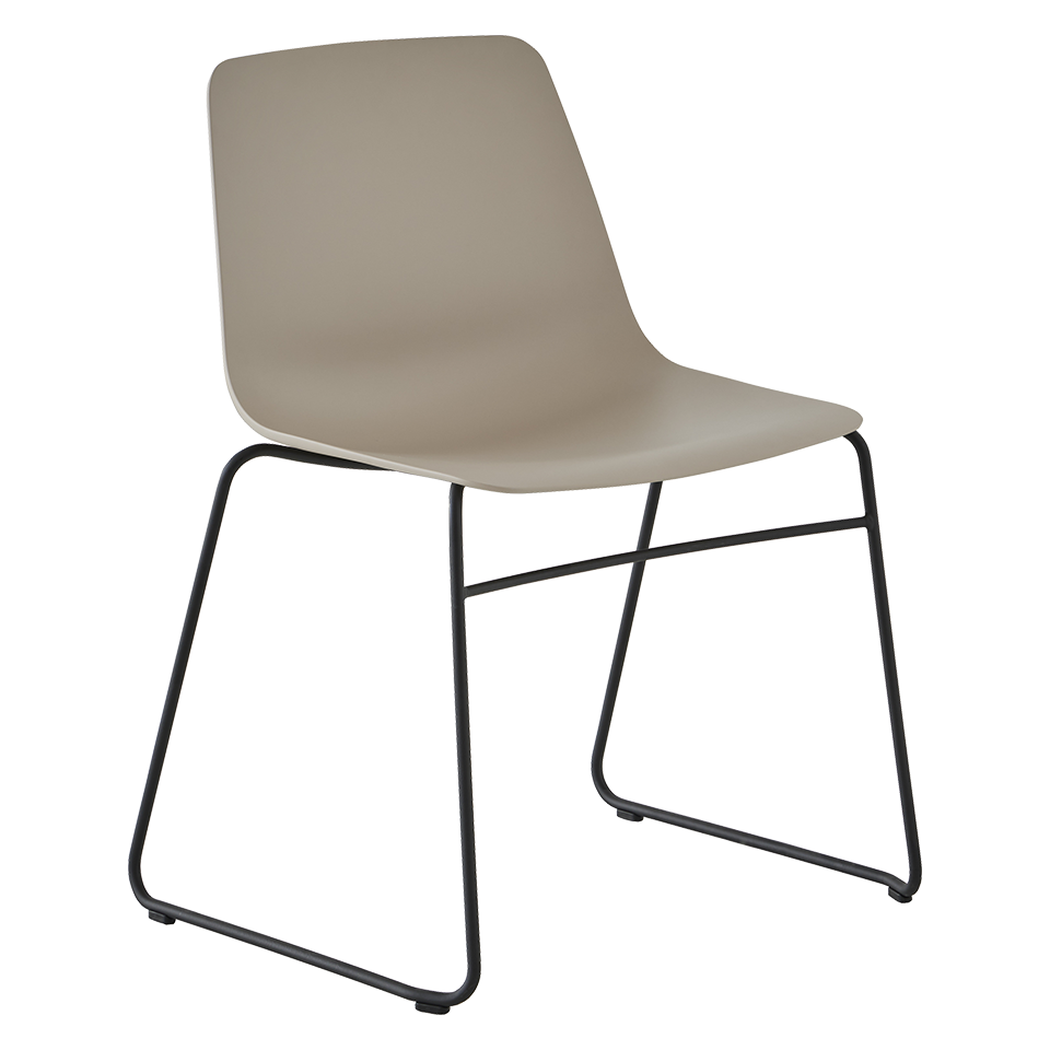 Stackable side chair with seat and back in polypropylene on four leg steel base. Greenguard Gold Certified.