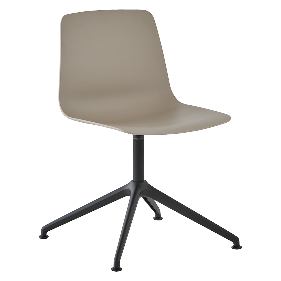 Swivel chair with polypropylene seat shell and 4 spoke swivel base made of cast aluminum alloy. The seat height is not adjustable. Greenguard Gold-certified to protect indoor air quality.