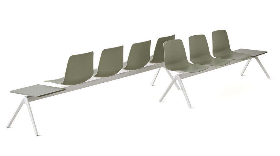 Structural frame bench with selection of seat and table top options.Greenguard Gold Certified.