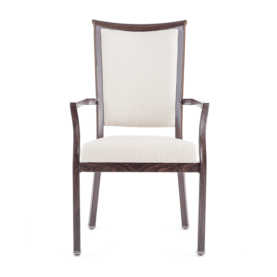 Woodlook armchair with frame manufactured entirely from aluminum but with realistic appearance of wood. Highly durable and scratch resistant. Tested to 400 lbs weight load.
