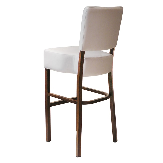 Woodlook barstool with frame manufactured entirely from aluminum but with realistic appearance of wood. Highly durable and scratch resistant. Tested to 400 lbs weight load.