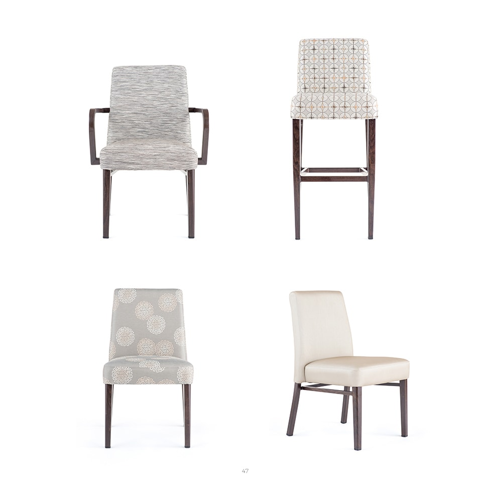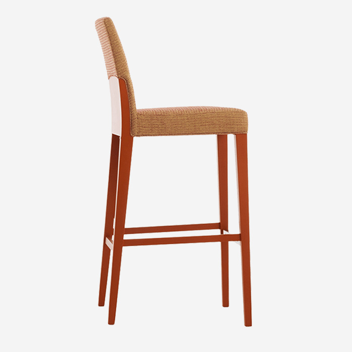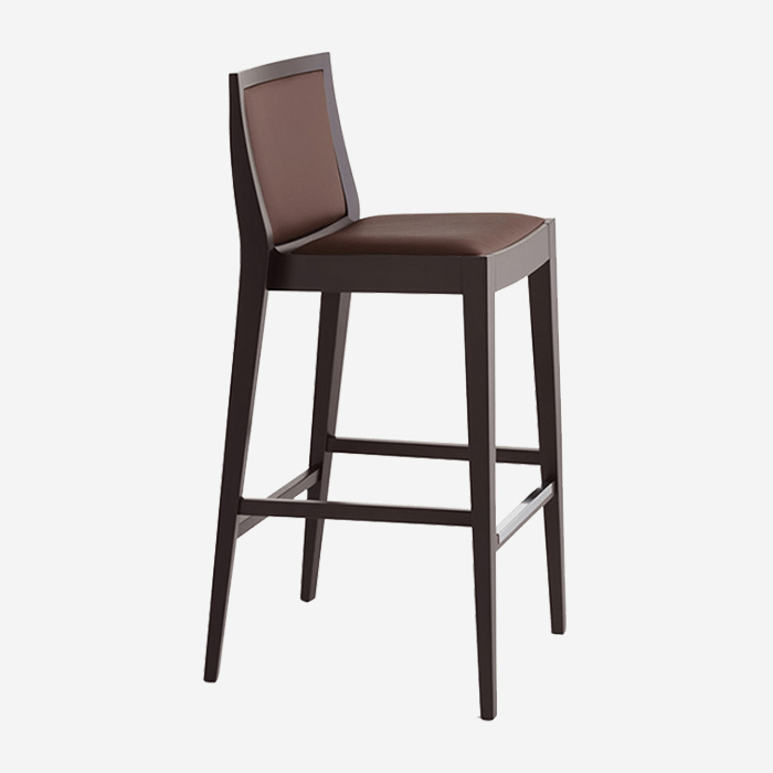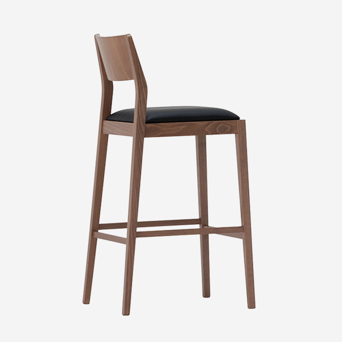 Woodlook bar stool with frame manufactured entirely from aluminum but with realistic appearance of wood. Highly durable and scratch resistant. With grip handle. Tested to 400 lbs weight load.