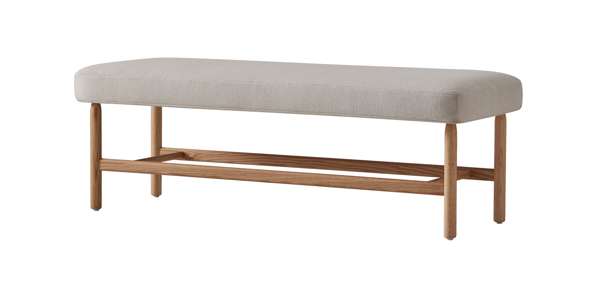 Upholstered ottoman with solid oak frame. 121cm x 47cm / 47.2" x 17.7"