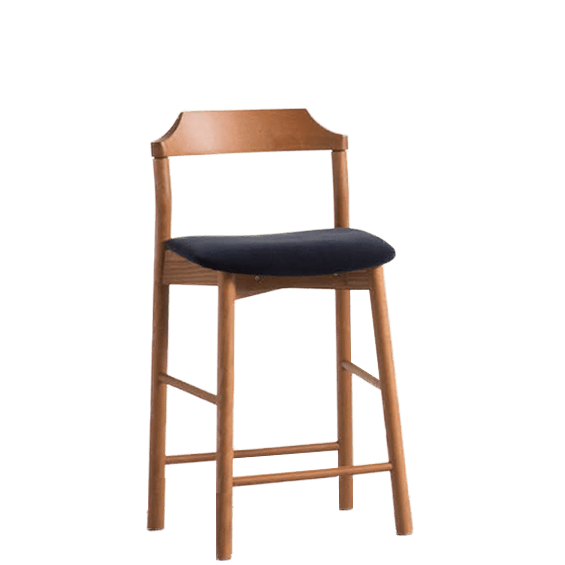Counter stool with an upholstered seat on a solid beech frame. Fitted with a stainless steel kick-plate on the front footrest