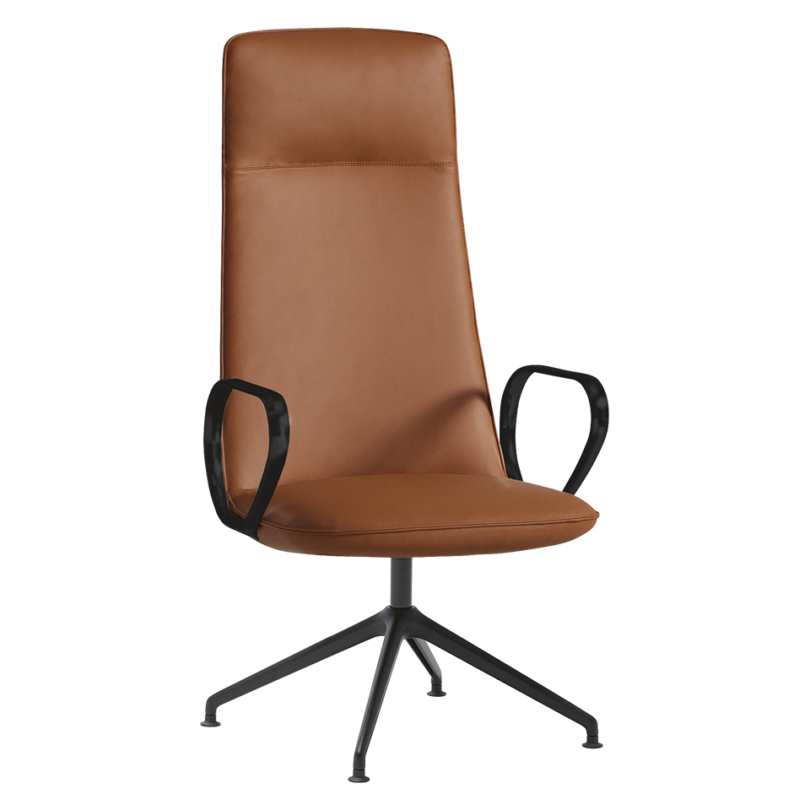 Swivel armchair with high backrest, 4 Spoke cast aluminum alloy base fitted. The seat height is not adjustable.
