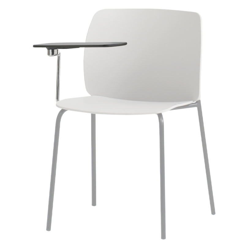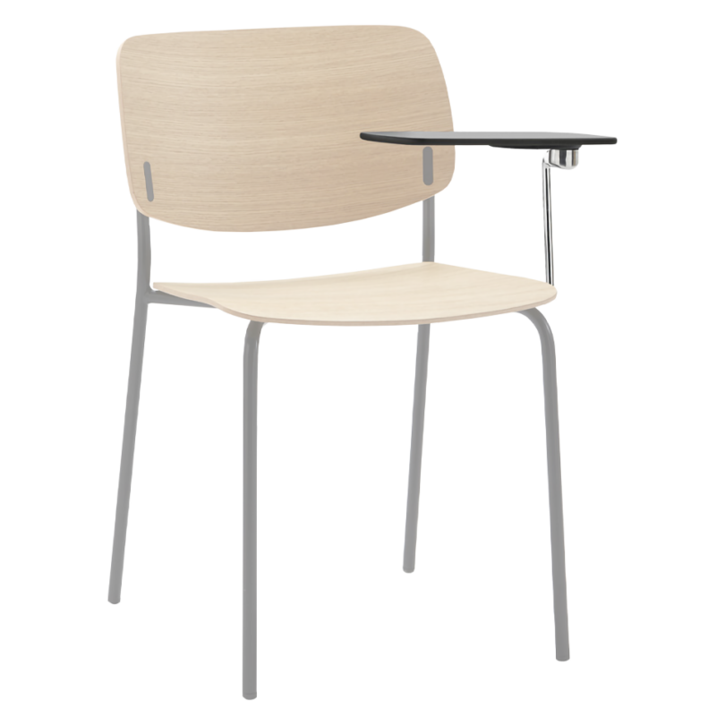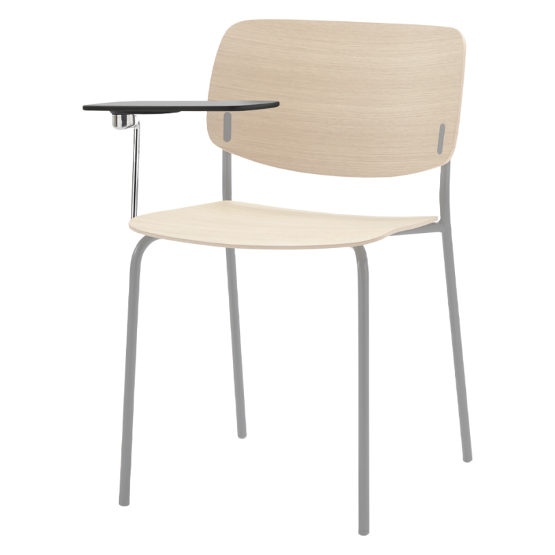 Optional detachable writing tablet for right-handed users. Fully foldable. Metal structure in chrome and joint in polished cast aluminum. For use with Aryn Max 4 leg frame chair.