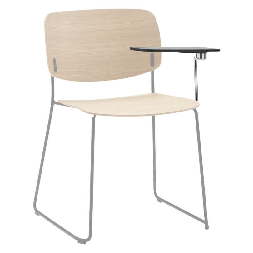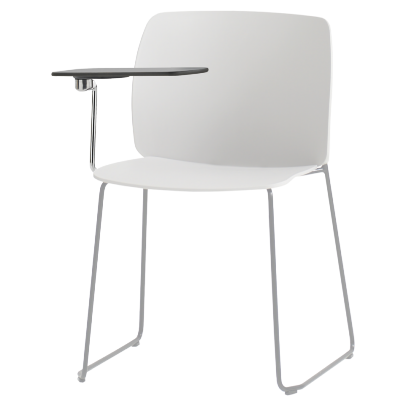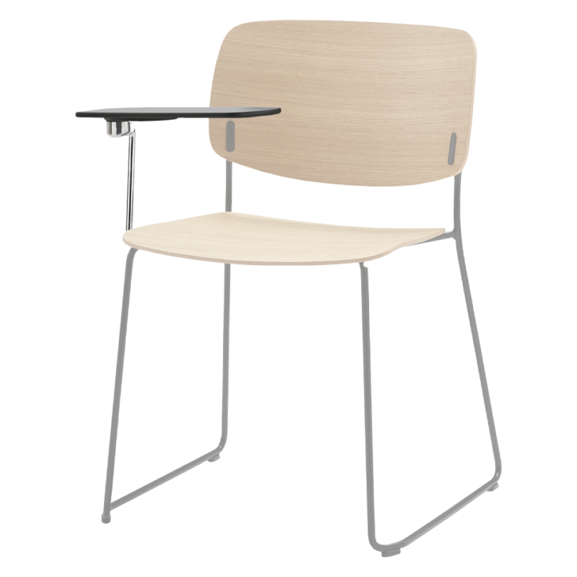 Optional detachable writing tablet for right-handed users. Fully foldable. Metal structure in chrome and joint in polished cast aluminum. For use with Aryn Max sled frame chair.