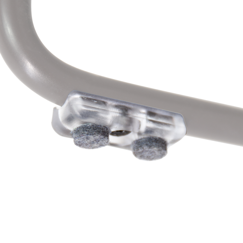Optional detachable writing tablet for left-handed users. Fully foldable. Metal structure in chrome and joint in polished cast aluminum. For use with Aryn Max sled frame chair.