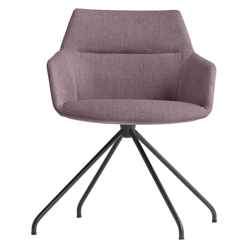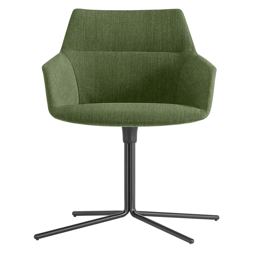 Fully upholstered arm chair on cross base. Greenguard Certified.