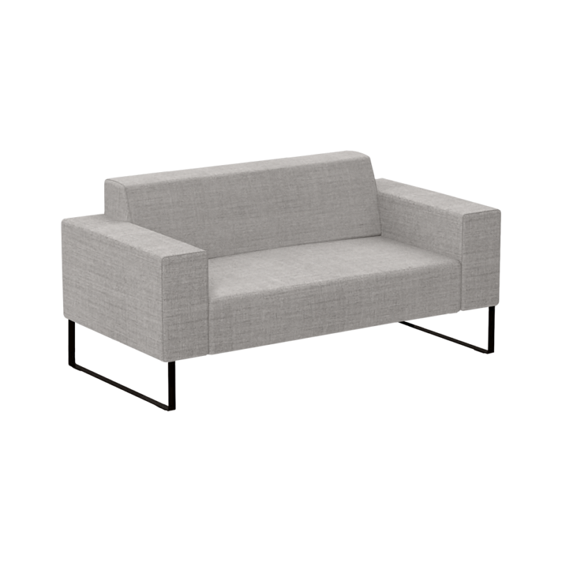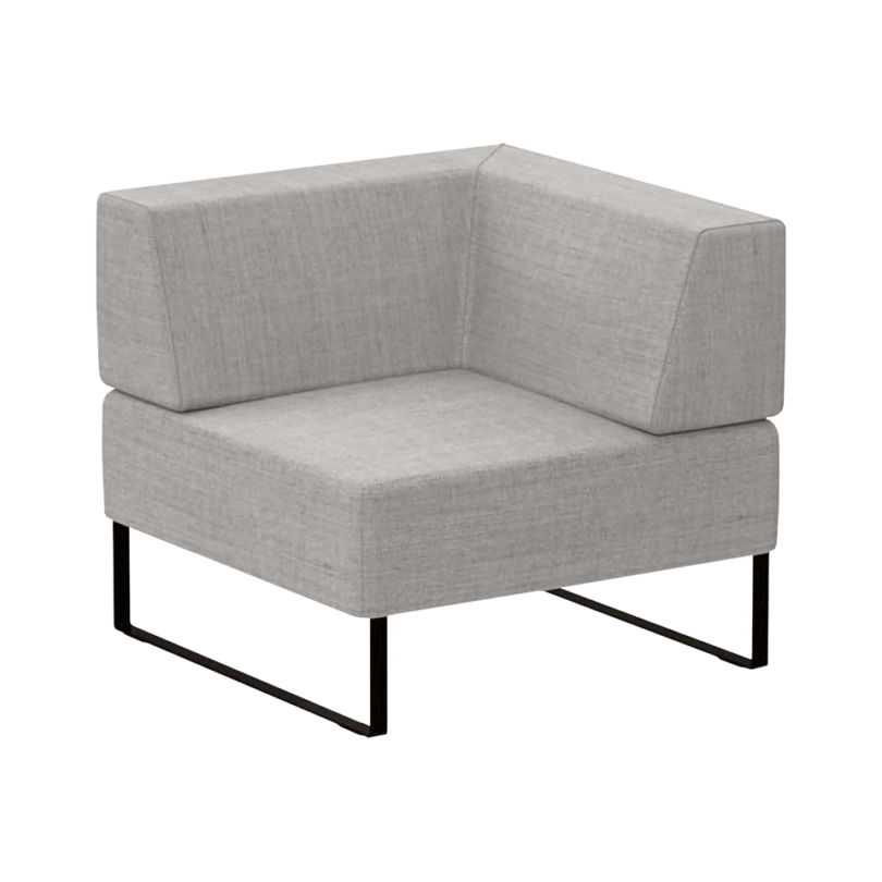 Upholstered seat with (Left) corner backrest measuring 31.5″ x 31.5″ and steel plate legs.
