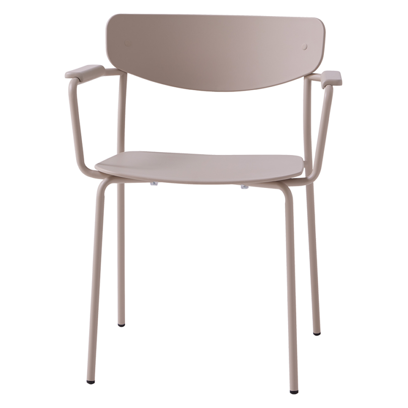 Stackable sidechair with epoxy powdercoat frame and seat & back in polypropylene. Arms in polyamide