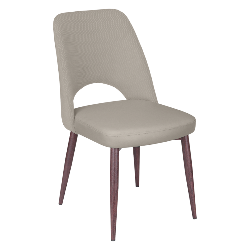 Woodlook sidechair with frame manufactured entirely from aluminum but with realistic appearance of wood. Lightweight and highly scratch resistant.