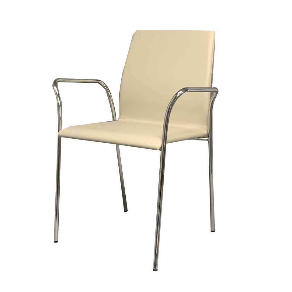 [description] => Armchair on 4 leg base with chrome frame. Beige Beech veneered shell