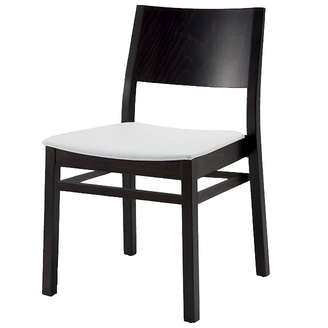 [description] => Chair with 4 stretchers on a 102 Dark Walnut stained beech frame with curved plywood seat. Seat upholstered in Customers Own Material.