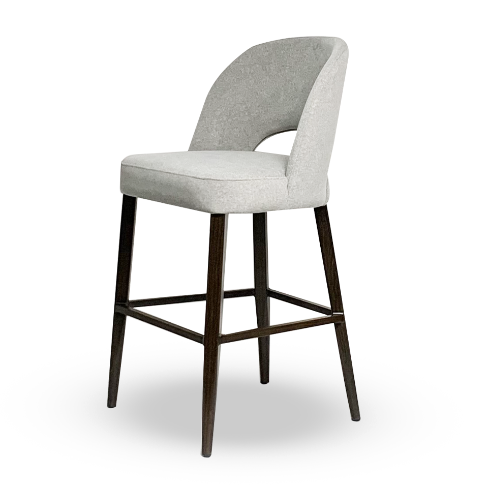 Woodlook barstool with frame manufactured entirely from aluminum but with realistic appearance of wood.
