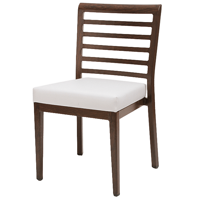 Woodlook® sidechair with frame manufactured entirely from aluminum but with realistic appearance of wood. Highly durable and scratch resistant.
