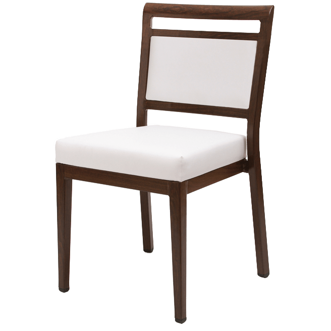 Woodlook® sidechair with frame manufactured entirely from aluminum but with realistic appearance of wood. Stacks 5. Highly durable and scratch resistant.