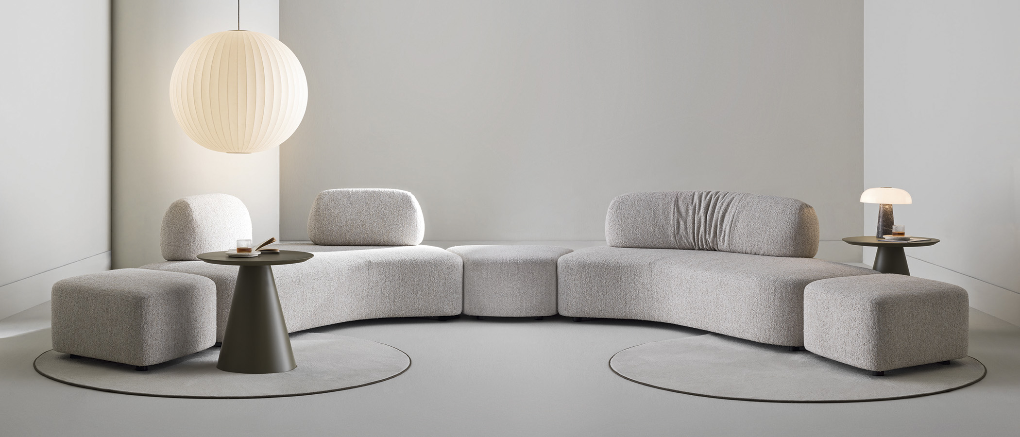 Flow is a modular seating series that gives exceptional creative freedom with its unique shapes and movable backrests. The irregularly-shaped seats can form elegant sectional sofas or be used independently as individual lounge seats.