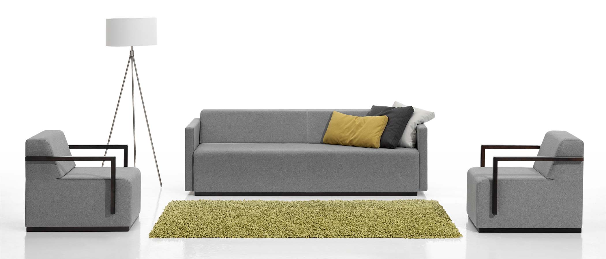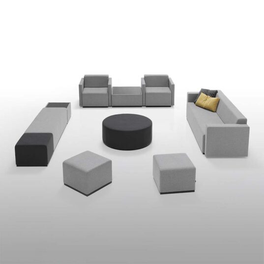 Pau is a versatile collection of upholstered modular elements that can be arranged in an endless number of layouts to adapt to the most diverse architectural styles and settings. The collection is made up of upholstered elements of different sizes, manufactured with or without backrests and that can be fitted with wooden, upholstered or metallic arms.