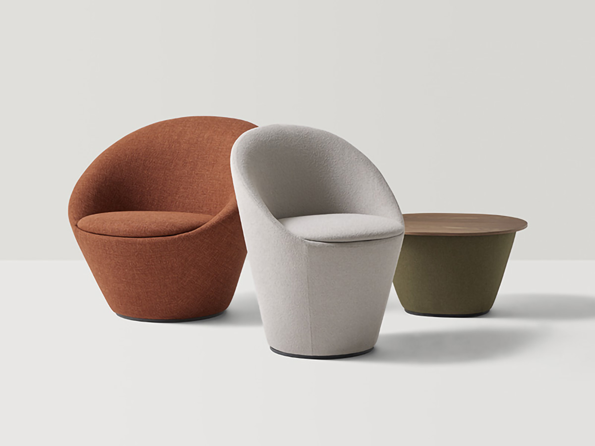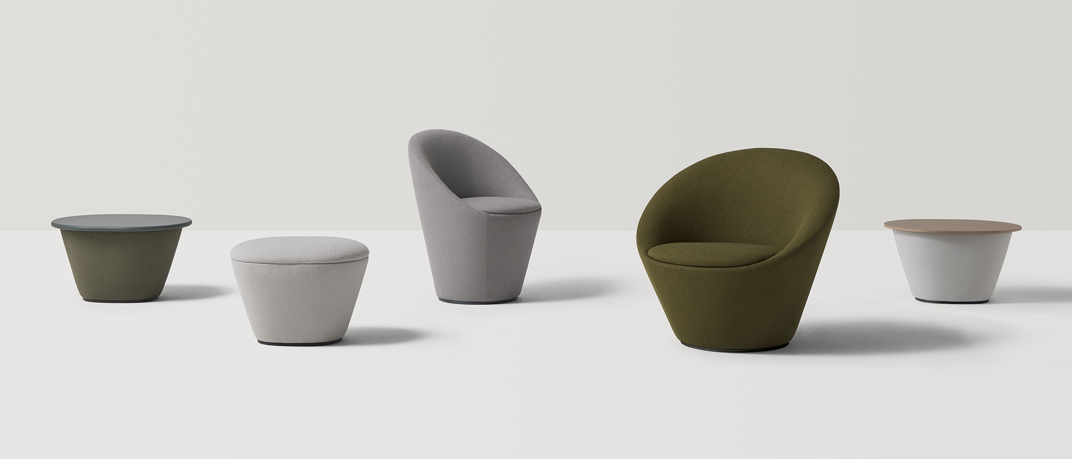 A refined series of commercial lounge furniture designed by Florent Coirier. Named for the similarly curved bao buns, Wabao is both comfortable and sustainable. It is Greenguard Gold-certified and CARB ATCM Phase 2-compliant to protect indoor air quality. The foam is free from CFCs and HCFCs, the water-based glues are solvent-free, and the interior structure is made of sustainably sourced wood.