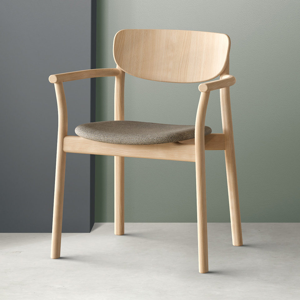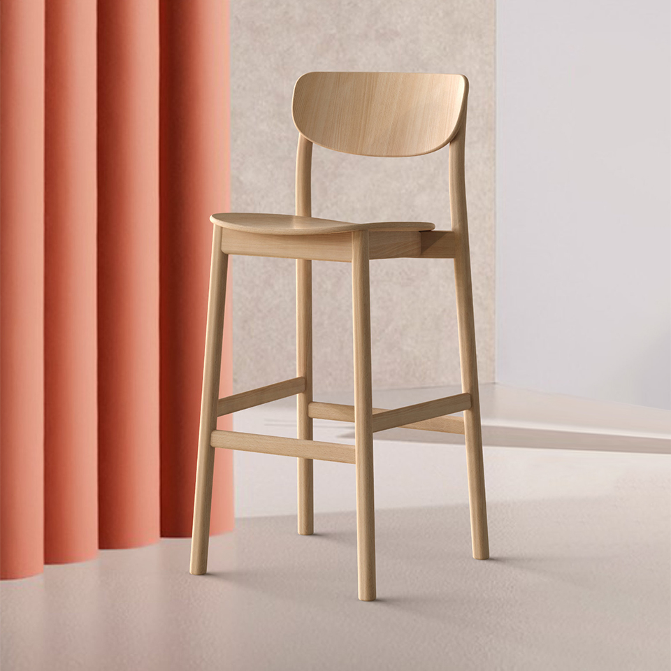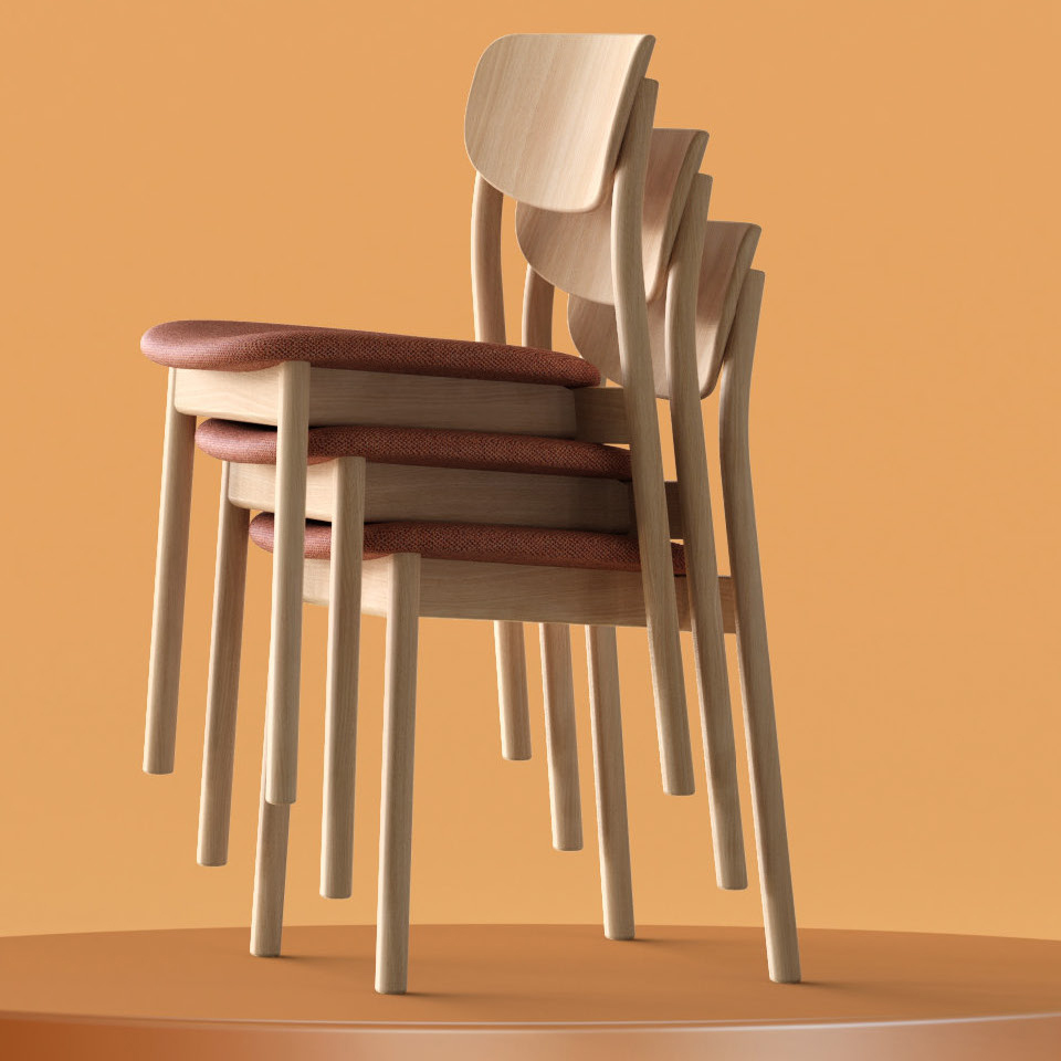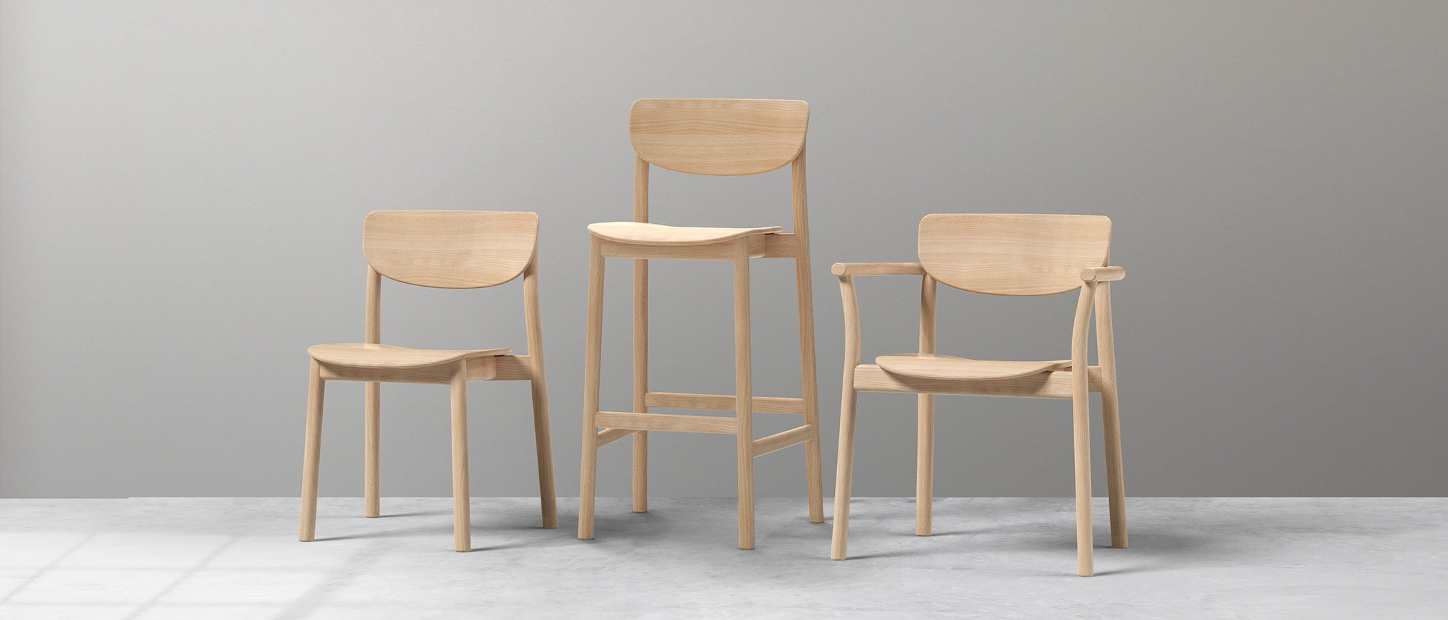 The Zelda series blends beautiful craftsmanship and practicality. These stackable chairs, barstools, and counter stools feature a light and airy design, upholstery options, and a wide range of finishes to choose from. Made of solid beechwood.