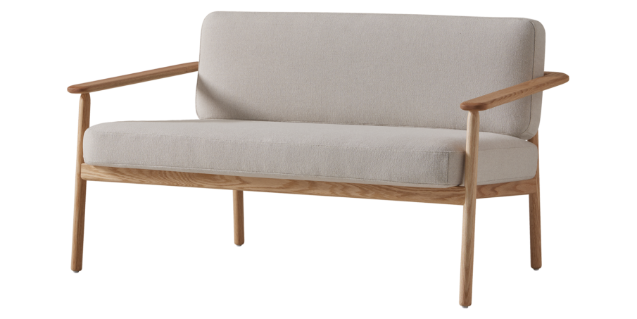 Upholstered sofa with solid oak frame. Choose from any fabric for the seat and contrasting backrest support