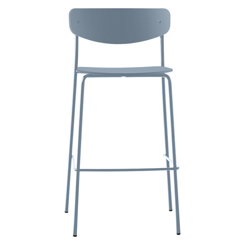 Stackable high stool with polypropylene seat/back and round steel tube 4 leg frame. GREENGUARD Gold Certified.
