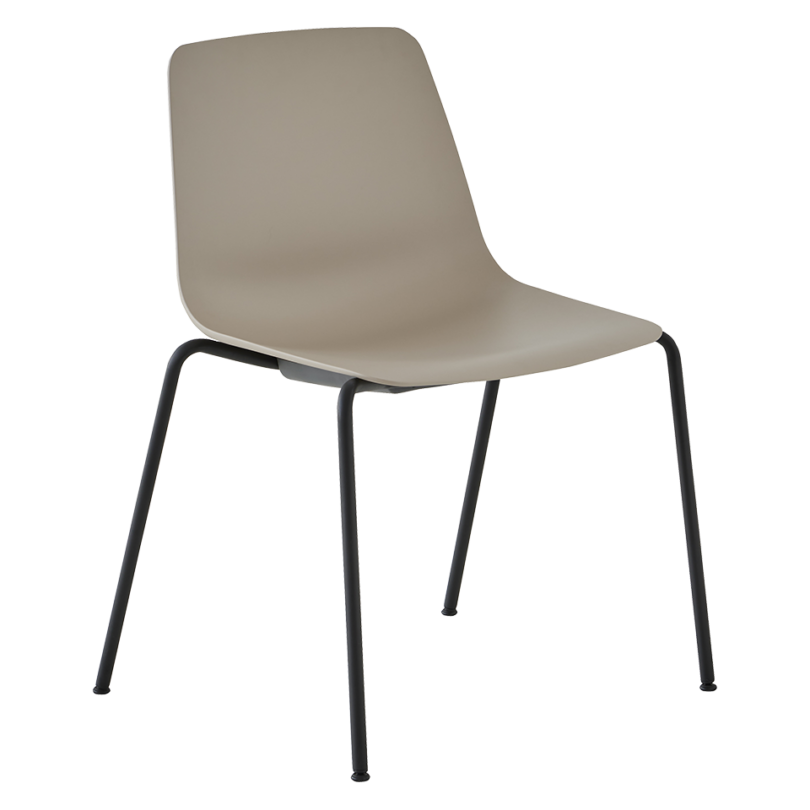 Stackable side chair with seat and back in polypropylene on four leg steel base. Greenguard Certified.