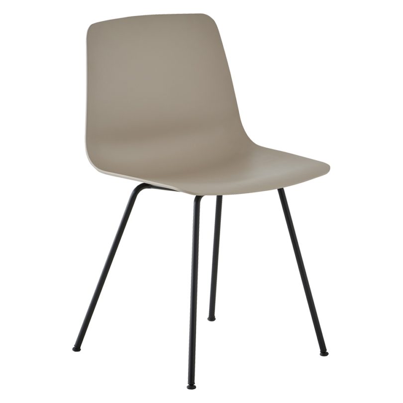 Side chair with seat and back in polypropylene on four leg steel base. Greenguard Certified.